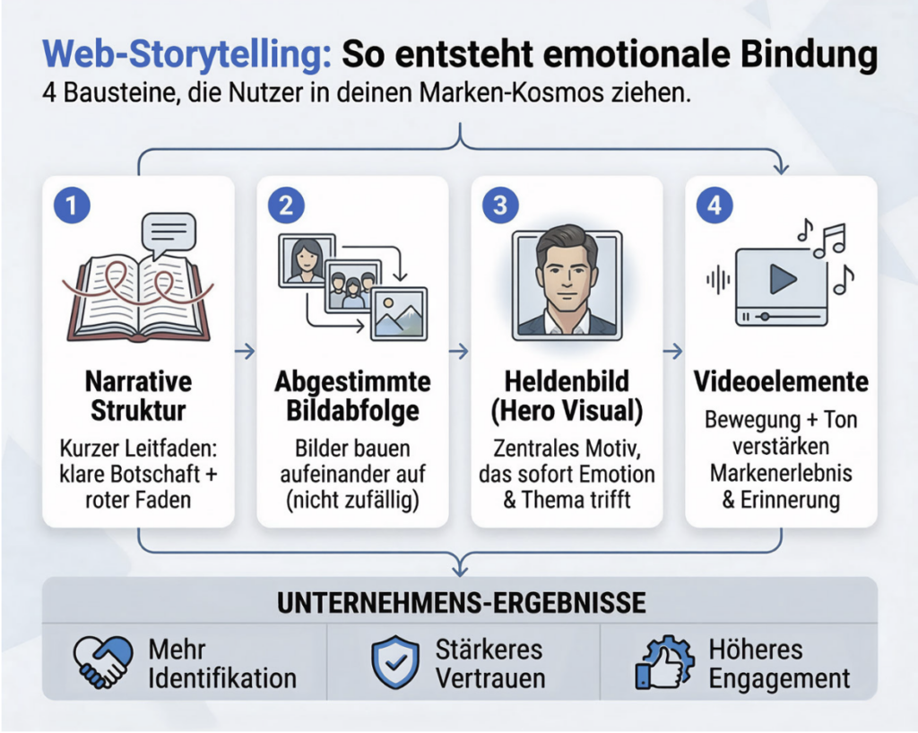Gezieltes visuelles Storytelling steigert die emotionale Bindung deiner Nutzer. Eine clevere narrative Struktur zieht User in deinen Marken-Kosmos und verstärkt die Verbindung. Schlüssel dazu sind klare, aufeinander abgestimmte Bildabfolgen und zentrale Botschaften. Sie wirken nicht durch Zufall, sondern durch präzise Planung.